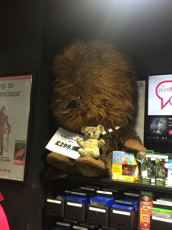 Dad and I ran into Chewbacca at the HMV store on Oxford Street in London. We were shocked that Han would consider selling him but I couldn’t resist having my photo taken